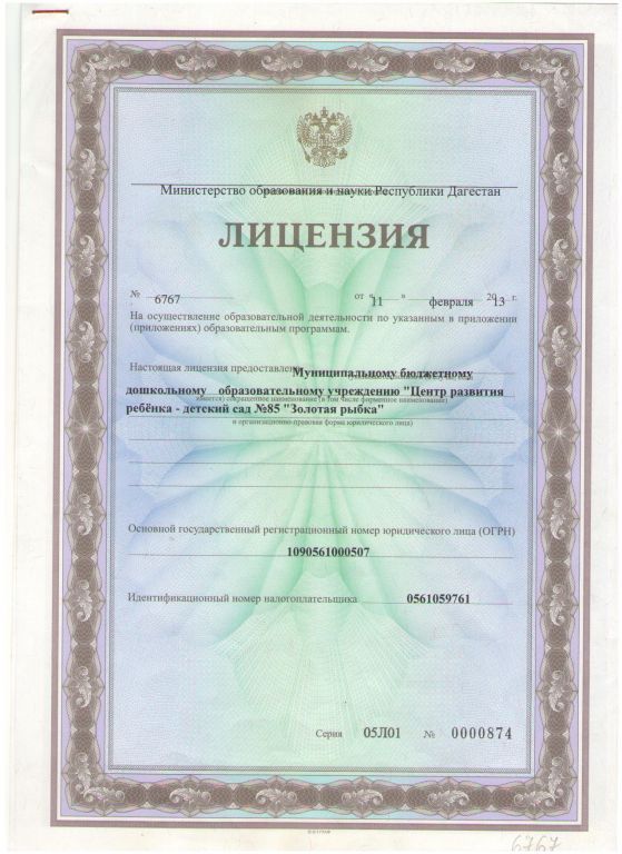 Полное наименование образовательной организации* Муниципальное бюджетное дошкольное образовательное учреждение "Центр развития ребенка - детский сад№85 "Золотая рыбка"